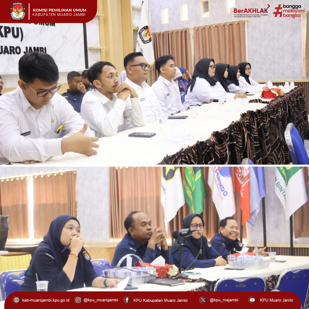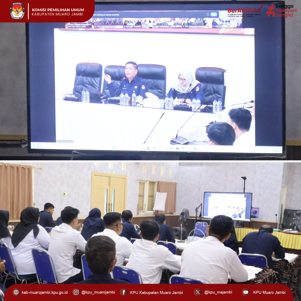 Halo #TemanPemilih Komisi Pemilihan Umum Kabupaten Muaro Jambi mengikuti zoom kegiatan pengantar tugas CPNS pada Sekretariat KPU Kabupaten/Kota Se-Provinsi Jambi oleh Sekretaris Komisi Pemilihan Umum Provinsi Jambi H. Khoirul Bahri Lubis. Selasa 10 Juni 2025.
