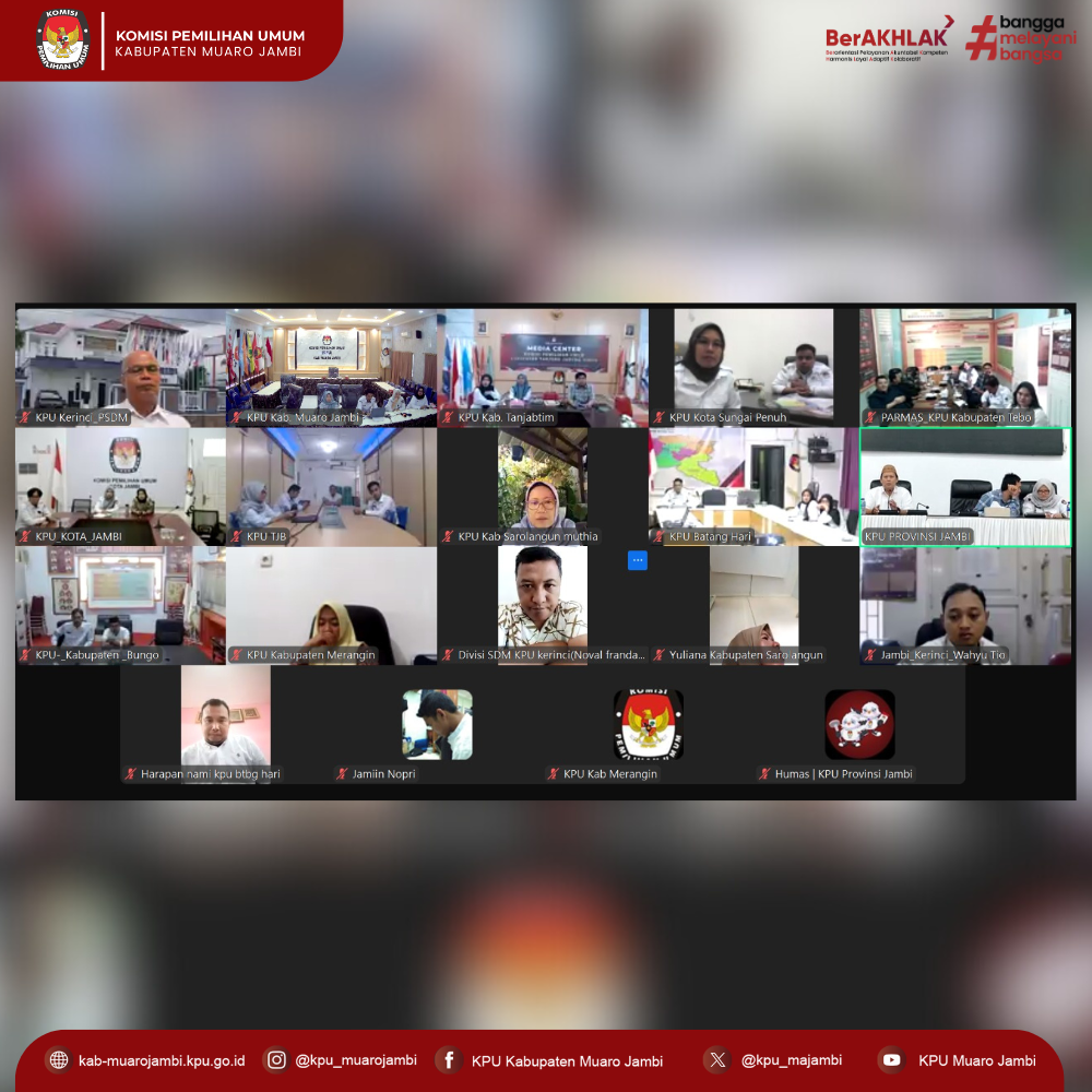 Halo #TemanPemilih, Komisi Pemilihan Umum (KPU) Kabupaten Muaro Jambi mengikuti zoom meeting rapat koordinasi yang dihadiri oleh KPU Provinsi Jambi serta KPU Kabupaten/Kota se-Provinsi Jambi.