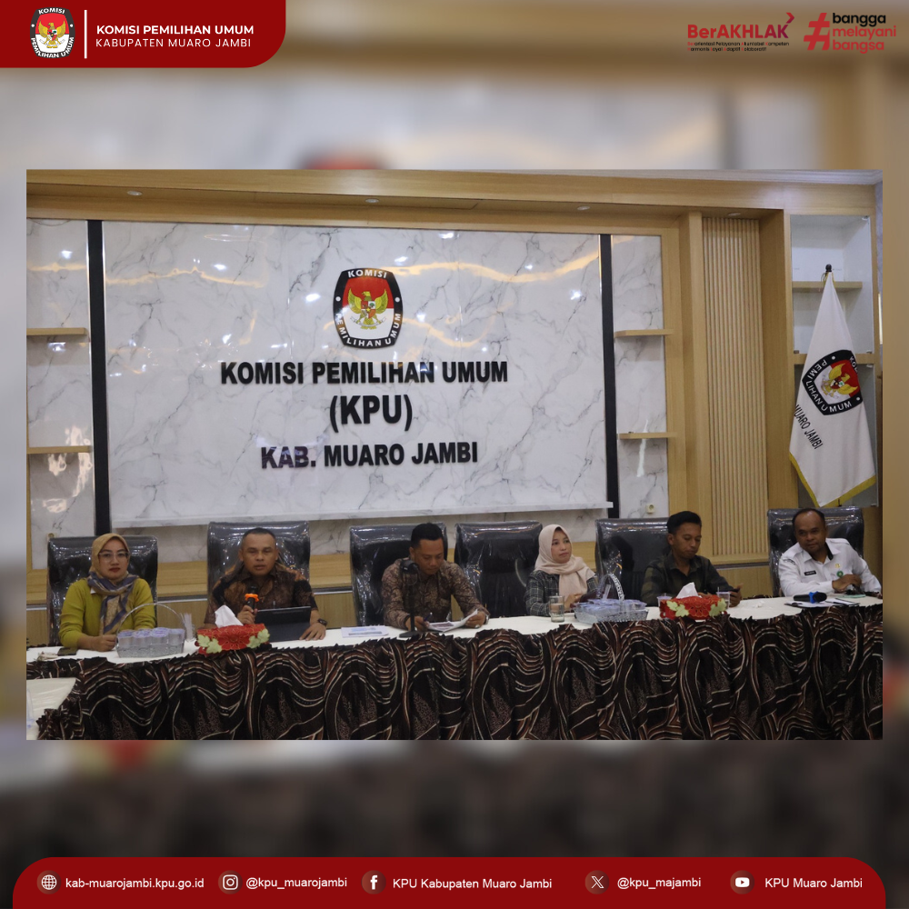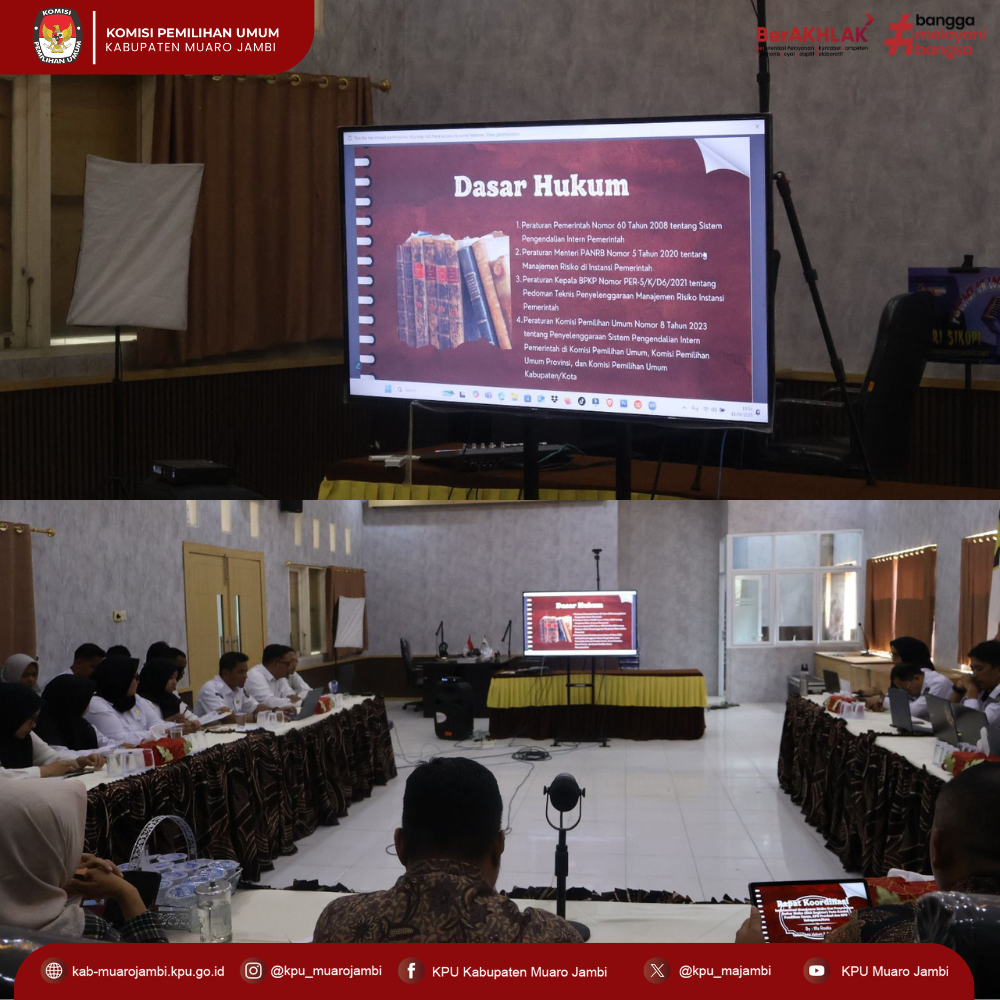 Halo #TemanPemilih, Komisi Pemilihan Umum Kabupaten Muaro Jambi melaksanakan kegiatan Rapat Penyusunan Risk Register atau Daftar Risiko Tahun 2025. Kegiatan ini diikuti oleh Ketua dan Anggota KPU Kabupaten Muaro Jambi, Plt. Sekretaris, Kepala Subbagian, serta staf KPU Kabupaten Muaro Jambi. Kamis, 19 Juni 2025.