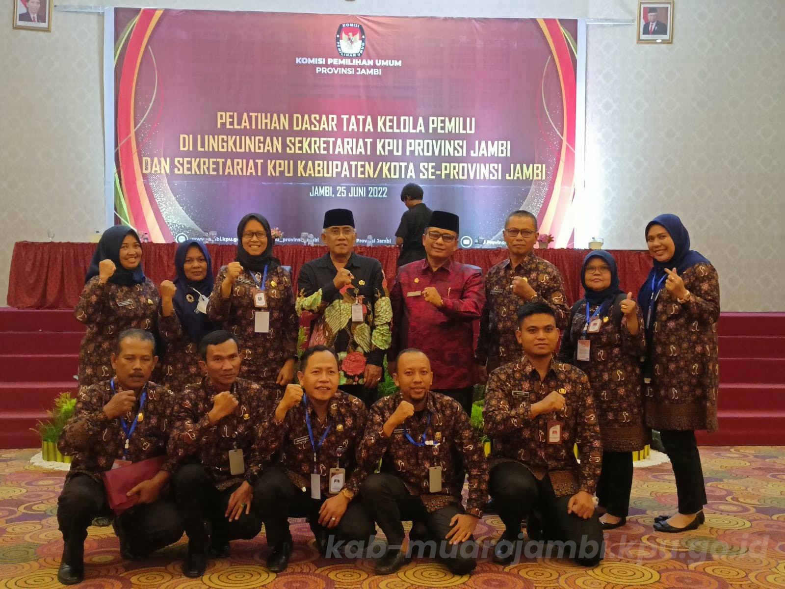 Jambi, kab-muarojambi.kpu.go.id – Jelang perhelatan demokrasi nasional yaitu Pemilu Tahun 2024 yang akan dilaksanakan pada hari Rabu 14 Februari 2024, Komisi Pemilihan Umum Republik Indonesia (KPU RI) melaksanakan program peningkatan kapasitas/kompetensi bagi seluruh ASN/PNS Sekretariat KPU Provinsi dan Sekretariat KPU Kabupaten/Kota bertajuk Pelatihan Dasar Tata Kelola Pemilu yang dilakukan dalam beberapa gelombang. Di Provinsi Jambi berdasarkan Surat Sekretaris Jenderal KPU RI Nomor 1164/PLB.02-SD/13/2022 Pelatihan Dasar Tata Kelola Pemilu dilaksanakan pada hari Sabtu, 25 Juni 2022. Sekretariat KPU Muaro Jambi mengikuti Pelatihan Dasar Tata Kelola Pemilu tersebut berdasarkan surat Sekretaris KPU Provinsi Jambi Nomor 271/SDM.11-Und/15/2022 yang dilaksanakan di Ratu Convention Center. Pelatihan Dasar Tata Kelola Pemilu diawali dengan menyanyikan Lagu Kebangsaan Indonesia Raya, pembacaan Do’a yang dibawakan oleh Bapak Rizki, pengantar acara disampaikan oleh Sekretaris KPU Propinsi Jambi Bapak H. Khoirul Bahri Lubis, serta arahan Sekretaris Jenderal KPU RI Bapak Bernard Dermawan Sutrisno melalui video. Dalam pengantarnya Sekretaris KPU Propinsi Jambi menyampaikan bahwa Pelatihan Dasar Tata Kelola Pemilu ini adalah kali pertama dilaksanakan dan di Propinsi Jambi diikuti oleh 177 orang dengan keterangan satu orang berhalangan dikarenakan baru melakukan persalinan, hal ini menjadi wujud komitmen Bapak Sekretaris Jenderal KPU RI yang mengharapkan Sekretariat KPU diseluruh Indonesia memiliki kompetensi/kapasitas Tata Kelola Pemilu dalam menghadapi Pemilu Tahun 2024, tambahnya pelatihan dasar Tata Kelola Pemilu ini diisi oleh dua orang narasumber yaitu Bapak Sigit Joyohadikusumo (Fungsional Ahli Utama KPU RI) dan Bapak Muhammad Nur Hasyim (Tim Pakar KPU RI) yang menyampaikan materi Dasar-Dasar Pemilu dan Demokrasi, Kesekretariatan Penyelenggara Pemilu Independen dan Pembelajaran: Pengalaman dan Studi Kasus. Dalam arahannya Sekretaris KPU RI Bapak Bernard Dermawan Sutrisno menekankan bahwa Integritas harus ada dalam diri Sekretariat KPU, dan Integritas itu bisa hadir jika Sekretariat KPU itu berwibawa dan wibawa Sekretariat KPU hadir jika sekretariat KPU memiliki kompetensi dan kompetensi bersumber dari ilmu pengetahuan. Selanjutnya acara dibuka langsung oleh Ketua KPU Provinsi Jambi Bapak H.Subhan. Dalam sambutannya menyampaikan dukungan Sekretariat KPU dalam penyelenggaraan Pemilu sangatlah penting, saat ini KPU telah menandai dimulainya tahapan dengan melaksanakan peluncuran tahapan pada tanggal 14 Juni 2022 yang lalu dan juga baru saja peluncuran Sistem Informasi Partai Politik (Sipol). Sebagai bentuk evaluasi, dilaksanakan posttest sebagaimana pretest yang juga sudah dilaksanakan sebelumnya pada tanggal 1 Juni 2022, Pengucapan Pakta Integritas Sekretariat KPU Se Propinsi Jambi yang dibacakan oleh Kabag Hukum dan SDM KPU Propinsi Jambi Ibu Dian Mariani diikuti oleh seluruh peserta. Acara Pelatihan Dasar Tata Kelola Pemilu ditutup oleh Sekretaris KPU Propinsi Jambi Bapak H. Khoirul Bahri Lubis (humas kpu mj par/foto par/arnold ds).