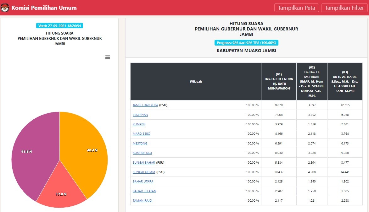 Berdasarkan ketentuan Peraturan Komisi Pemilihan Umum Nomor 6 Tahun 2021 tanggal 11 bulan November tahun 2021 perihal Pemutakhiran data Pemilih Berkelanjutan, hasil Rapat Koordinasi yang dilakukan oleh KPU Kabupaten Muaro Jambi menghasilkan hal sebagai berikut : Rekapitulasi Daftar Pemilih Berkelanjutan dengan jumlah sebanyak 278.963 (Dua ratus tujuh puluh delapan ribu Sembilan ratus enam puluh tiga) dengan rincian pemilih laki-laki berjumlah 142.600 (Seratus Empat Puluh Dua Ribu Enam Ratus) pemilih dan pemilih perempuan berjumlah 136.363 (Seratus Tiga Puluh Enam Ribu Tiga Ratus Enam Puluh Tiga) pemilih, tersebar di 4 (Empat) Kecamatan sesuai dengan rincian sebagaimana terlampir dalam Berita Acara ini.