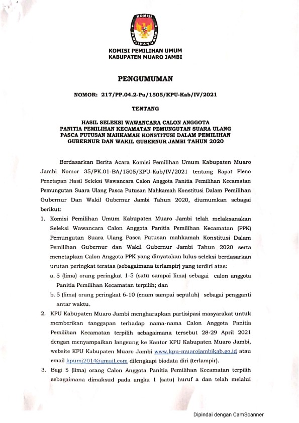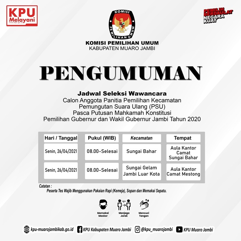 PENGUMUMAN HASIL SELEKSI WAWANCARA CALON ANGGOTA PPK PEMUNGUTAN SUARA ULANG (PSU) PASCA PUTUSAN MAHKAMAH KONSTITUSI TAHUN 2020
