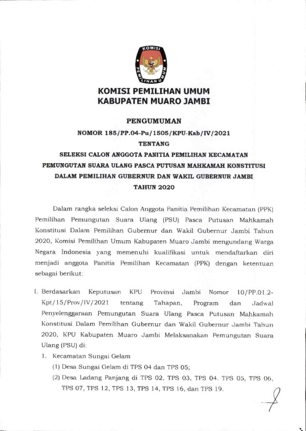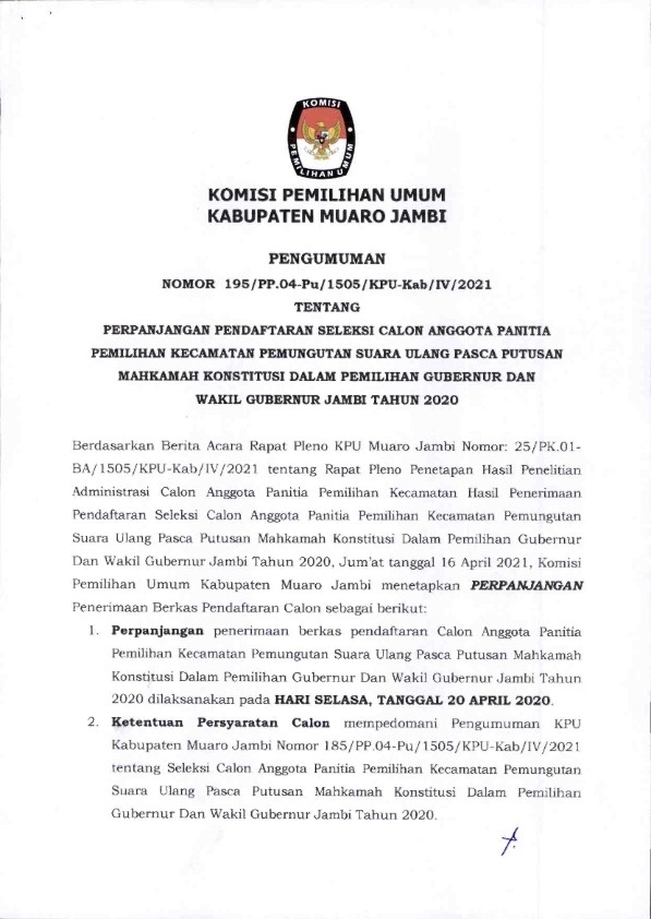 PENGUMUMAN PERPANJANGAN PENDAFTARAN SELEKSI PPK PASCA PASCA PUTUSAN MAHKAMAH KONSTITUSI TAHUN 2020