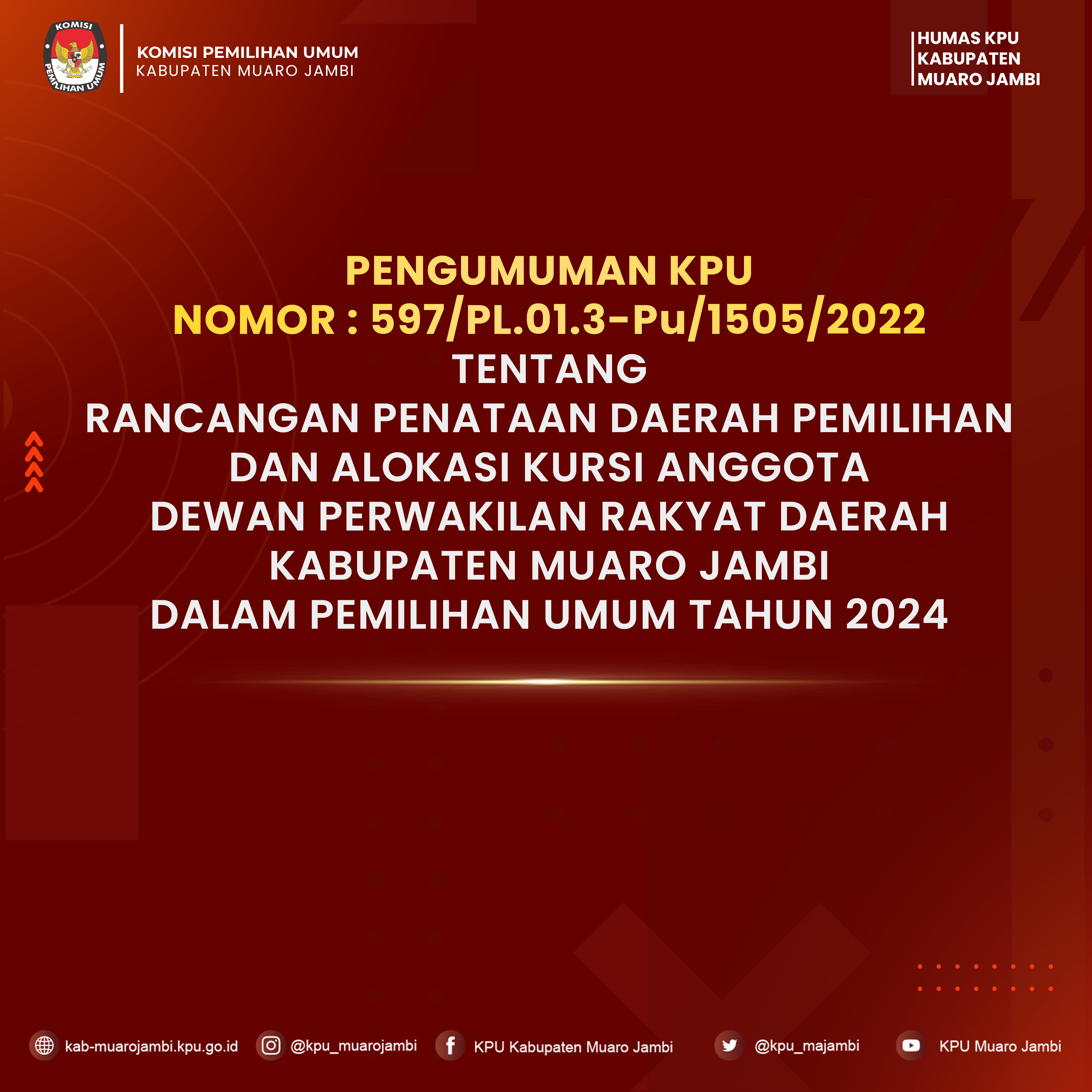 Sehubungan dengan terbitnya Keputusan Komisi Pemilihan Umum Nomor 534 Tahun 2022 tentang Perubahan atas Keputusan Komisi Pemilihan Umum Nomor 476 Tahun 2022 tentang Pedoman Teknis Pembentukan Badan Adhoc Penyelenggara Pemilihan Umum dan Pemilihan Gubernur dan Wakil Gubernur, Bupati dan Wakil Bupati, dan Walikota dan Wakil Walikota yang mengatur mengenai peruahan jadwal pembentukan PPS di dalamnya dengan ini, KPU Kabupaten Muaro Jambi menyampaikan hal-hal sebagai berikut: Bahwa berdasarkan Pengumuman KPU Kabupaten Muaro Jambi Nomor 670/PP.04.1-Pu/1505/2022 Tanggal 18 Desember 2022 Tentang Seleksi Calon Anggota Panitia Pemungutan Suara Untuk Pemilihan Umum Tahun 2024, jadwal pembentukan PPS dalam penerimaan pendaftaran dilaksanakan pada tanggal 18 s.d. 27 Desember 2022; Bahwa berdasarkan Keputusan Komisi Pemilihan Umum Nomor 534 Tahun 2022 tentang Perubahan atas Keputusan Komisi Pemilihan Umum Nomor 476 Tahun 2022 tentang Pedoman Teknis Pembentukan Badan Adhoc Penyelenggara Pemilihan Umum dan Pemilihan Gubernur dan Wakil Gubernur, Bupati dan Wakil Bupati, dan Walikota dan Wakil Walikota, masa jadwal pembentukan PPS dalam penerimaan pendaftaran dilaksanakan pada tanggal 18 s.d. 30 Desember 2022; Sehubungan dengan hal tersebut, KPU Kabupaten Muaro Jambi membuka penerimaan pendaftaran bagi calon anggota PPS sejak tanggal 18 Desember 2022 dan akan berakhir pada tanggal 30 Desember dengan ketentuan sebagai berikut: Persyaratan sebagai Anggota PPS tidak mengalami perubahan berdasarkan KPU Kabupaten Muaro Jambi Nomor 670/PP.04.1-Pu/1505/2022 Tanggal 18 Desember 2022 Tentang Seleksi Calon Anggota Panitia Pemungutan Suara Untuk Pemilihan Umum Tahun 2024; Bagi Dokumen Persyaratan yang telah diterima sebelum terbitnya Keputusan Komisi Pemilihan Umum Nomor 534 Tahun 2022 tentang Perubahan atas Keputusan Komisi Pemilihan Umum Nomor 476 Tahun 2022 tentang Pedoman Teknis Pembentukan Badan Adhoc Penyelenggara Pemilihan Umum dan Pemilihan Gubernur dan Wakil Gubernur, Bupati dan Wakil Bupati, dan Walikota dan Wakil Walikota dapat diterima. Bagi Dokumen Persyaratan yang diterima setelah terbitnya Keputusan Komisi Pemilihan Umum Nomor 534 Tahun 2022 tentang Perubahan atas Keputusan Komisi Pemilihan Umum Nomor 476 Tahun 2022 tentang Pedoman Teknis Pembentukan Badan Adhoc Penyelenggara Pemilihan Umum dan Pemilihan Gubernur dan Wakil Gubernur, Bupati dan Wakil Bupati, dan Walikota dan Wakil Walikota menyesuaikan dengan ketentuan yang diatur. Surat Pendaftaran dan kelengkapan dokumen disampaikan kepada KPU Kabupaten Muaro Jambi sejak tanggal 18 Desember 2022 sampai dengan tanggal 30 Desember 2022 Pukul 16.00 waktu setempat, melalui: siakba.kpu.go.id dan dokumen fisik yang disampaikan pada saat sebelum pelaksanaan seleksi tertulis; atau Petugas Pendaftaran di Kantor Sekretariat KPU Kabupaten Muaro Jambi Jl. Lintas Timur KM. 26 Komplek Perkantoran Pemkab Muaro Jambi Kontak : - Kiki Oktarina (085266660770) - Pariyanto (082182159617) - Rosita Kusumadewi (082377100910) - Rober Dianto (085266793111) Demikian pengumuman ini disampaikan, untuk diketahui. PENGUMUMAN PERUBAHAN JADWAL PPS